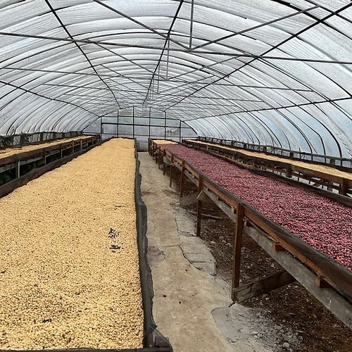 Enzos Anteil wird als Classic Natural verarbeitet. Die Kirschen werden selektiv gepflückt, vollreif auf Trockenbetten ausgelegt und über 4 bis 6 Wochen langsam in der Sonne getrocknet. Dabei werden sie regelmäßig gewendet, um eine gleichmäßige Trocknung zu gewährleisten.
